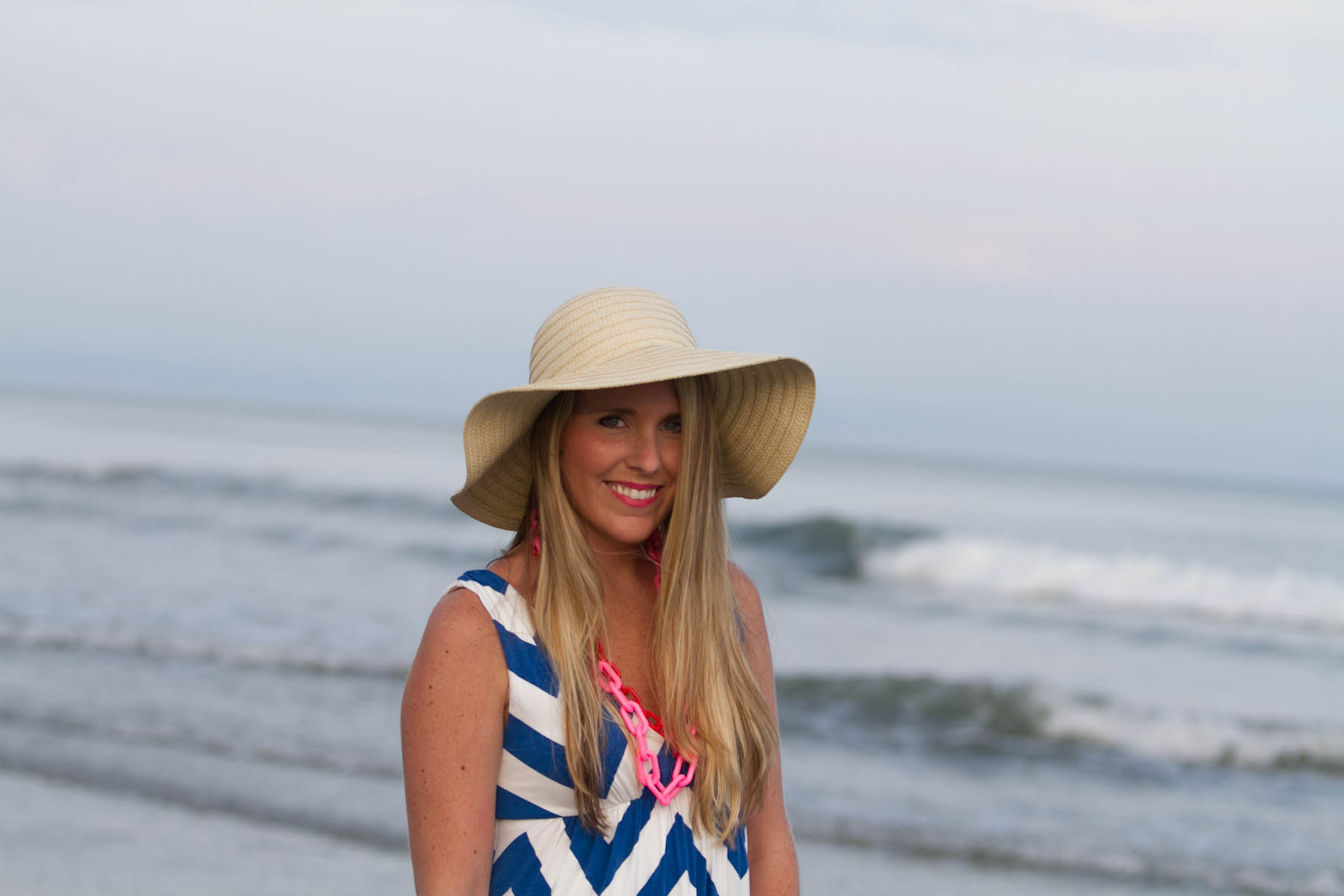 J.Crew factory dress, Gap hat (got mine at the outlet store but here’s a cute pink stripe and a raffia one), Banana Republic flip flops, Tobi sunglasses, Spike the Punch necklaces