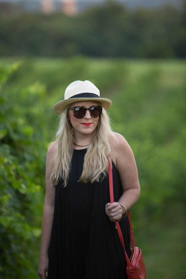 The possibilities of a black maxi dress are endless so this is definitely a good one to have. Not to mention it’s from Target! This time around I went for a more laid back summer look with messy hair and a panama hat, I just threw on a pair of strappy heels, my favorite gold choker and some red lips to dress it up. Perfect for a summer evening outfit.