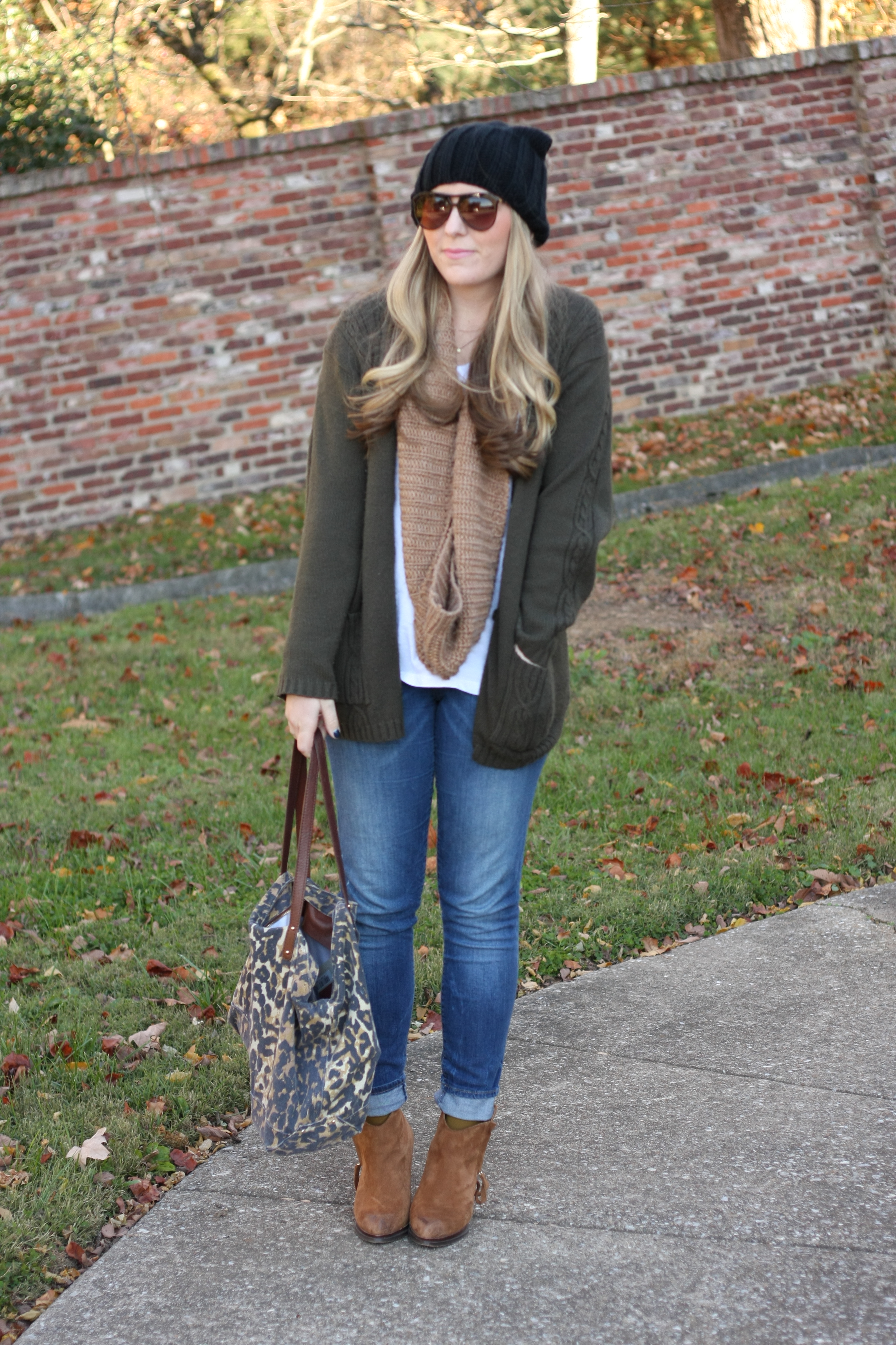 C&C California tee, Thrifted sweater, Gap jeans, ASOS beanie, Rebecca Minkoff tote (very similar and on sale!), Zara booties, Elizabeth and James sunglasses, Gap scarf