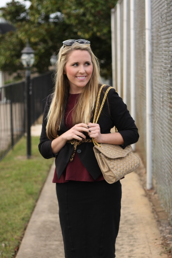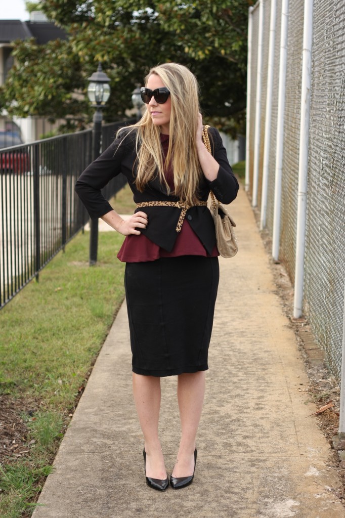 Love how you layered your peplum – also digging this burgundy/black/taupe combination…great fall look! 🙂