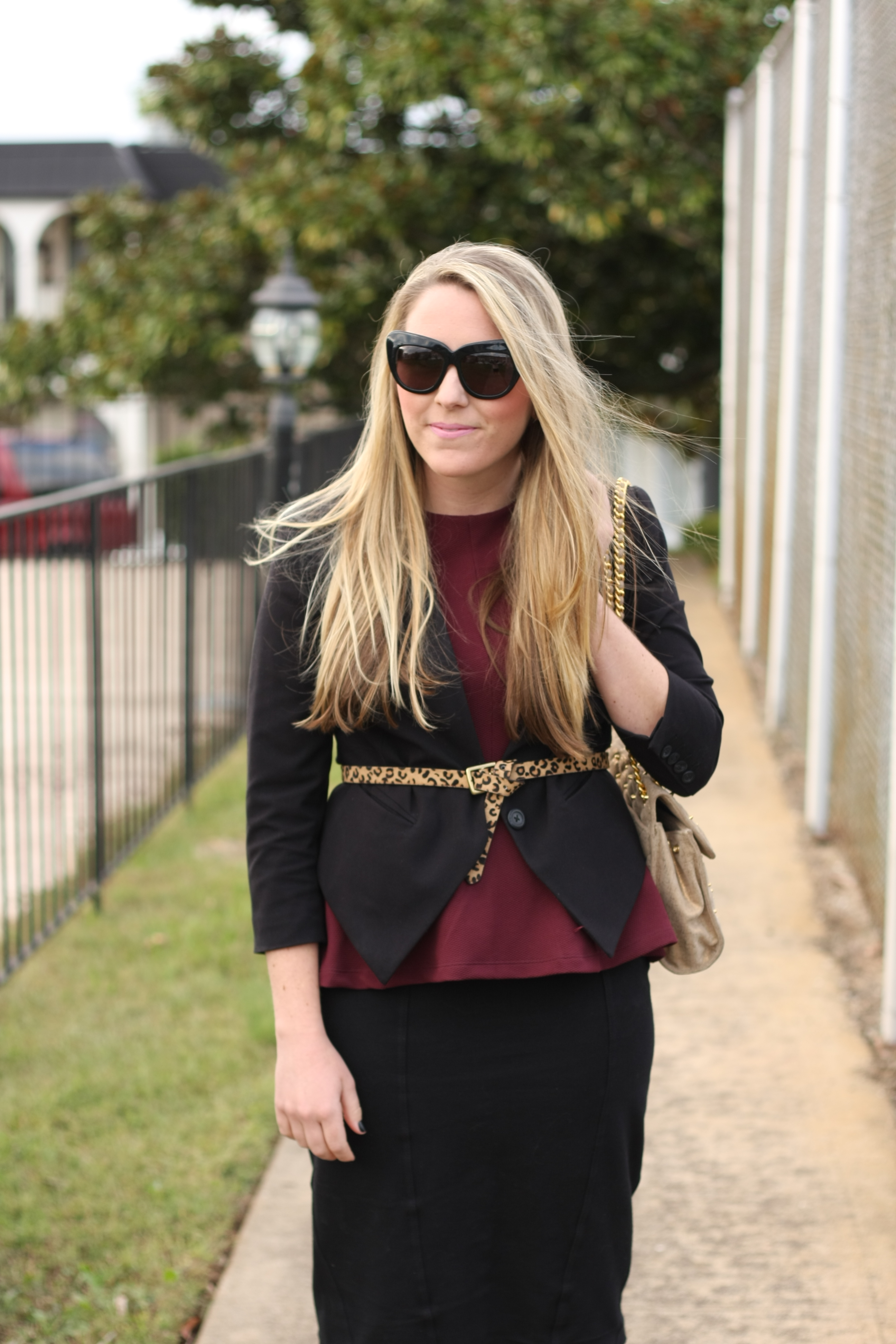 I love the unexpected suit look! And of course, the burgundy and leopard print! 🙂