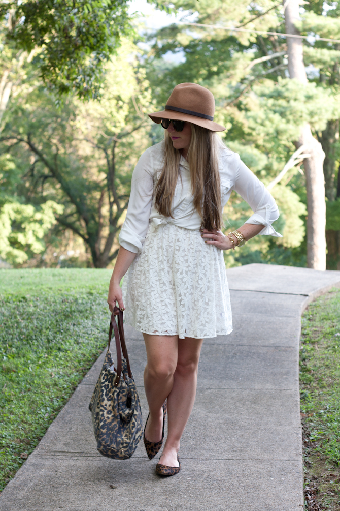 I am just absolutely smitten with this look. I love the all white with the leopard print (my fav!). I also LOVE your hat – I have been wanting one like that for ages. Great look girl! Cute doggy too 🙂 xo