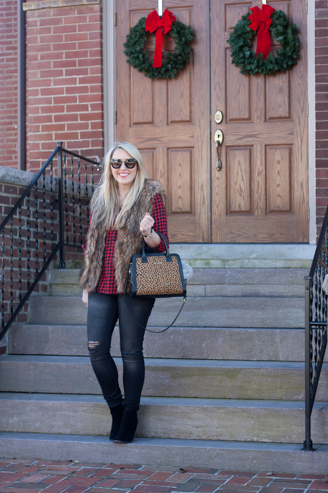 Faux fur is one of my favorite things to wear when winter rolls around! I love a fur vest, a fur collar or even a fur snood to add a little something extra to an outfit, especially for the holidays! It dresses up even the easiest of outfits like a flannel popover and distressed denim. Holiday outfits made easy! This faux fur vest from My Kind of Lovely is seriously amazing, it’s nice and full, looks expensive and the best part is it’s only $79! We only have a few left so make sure you order quick!